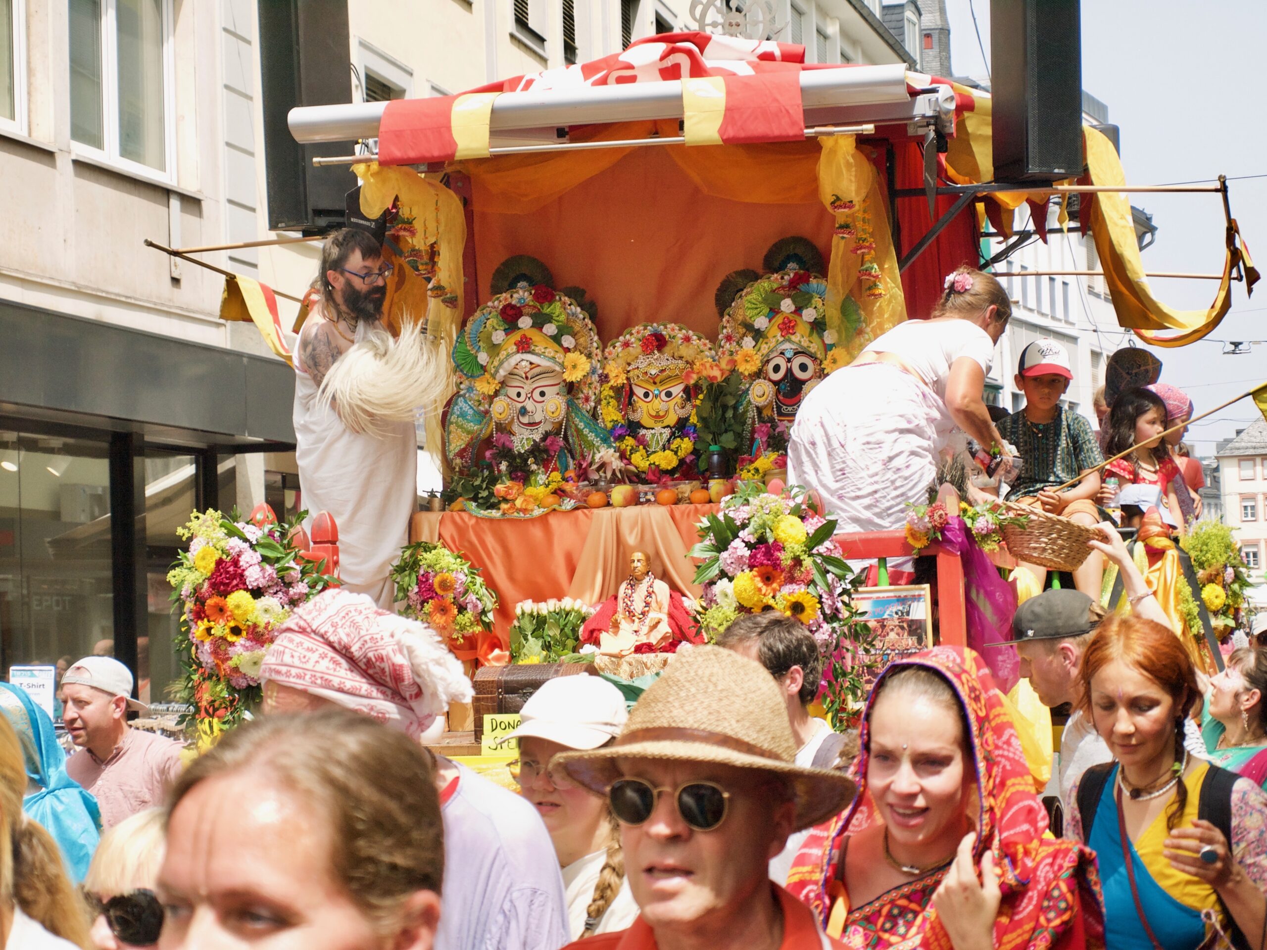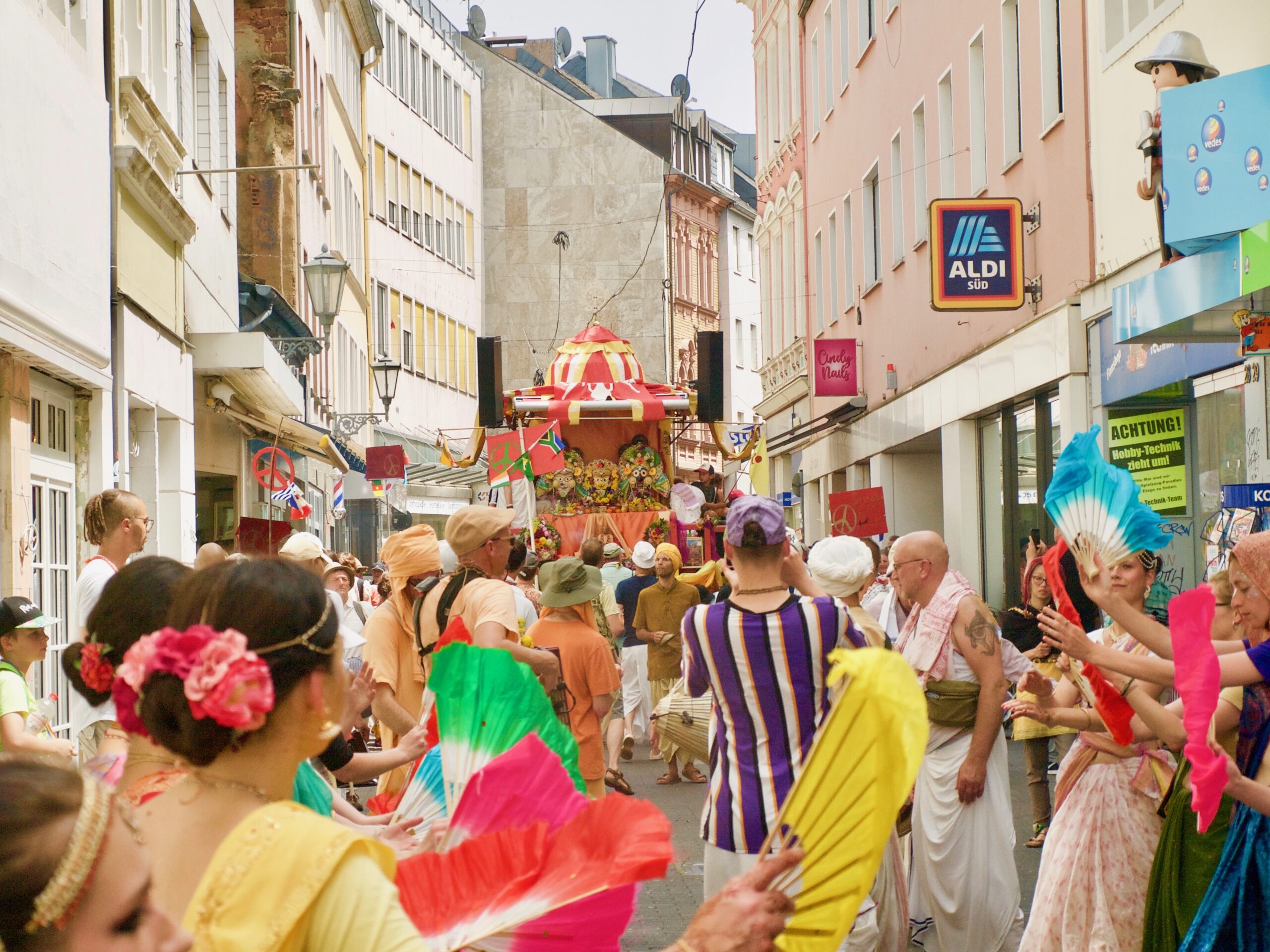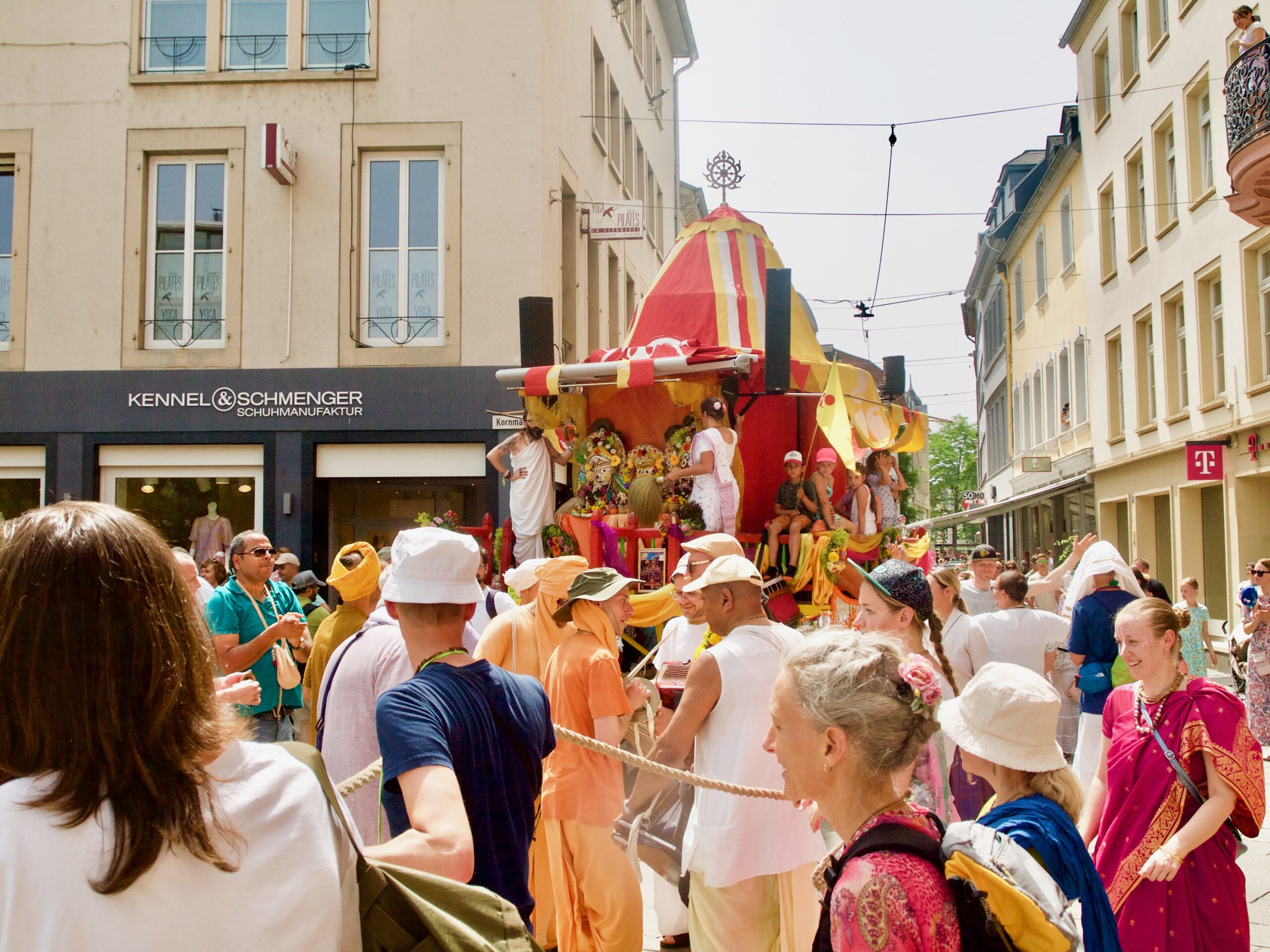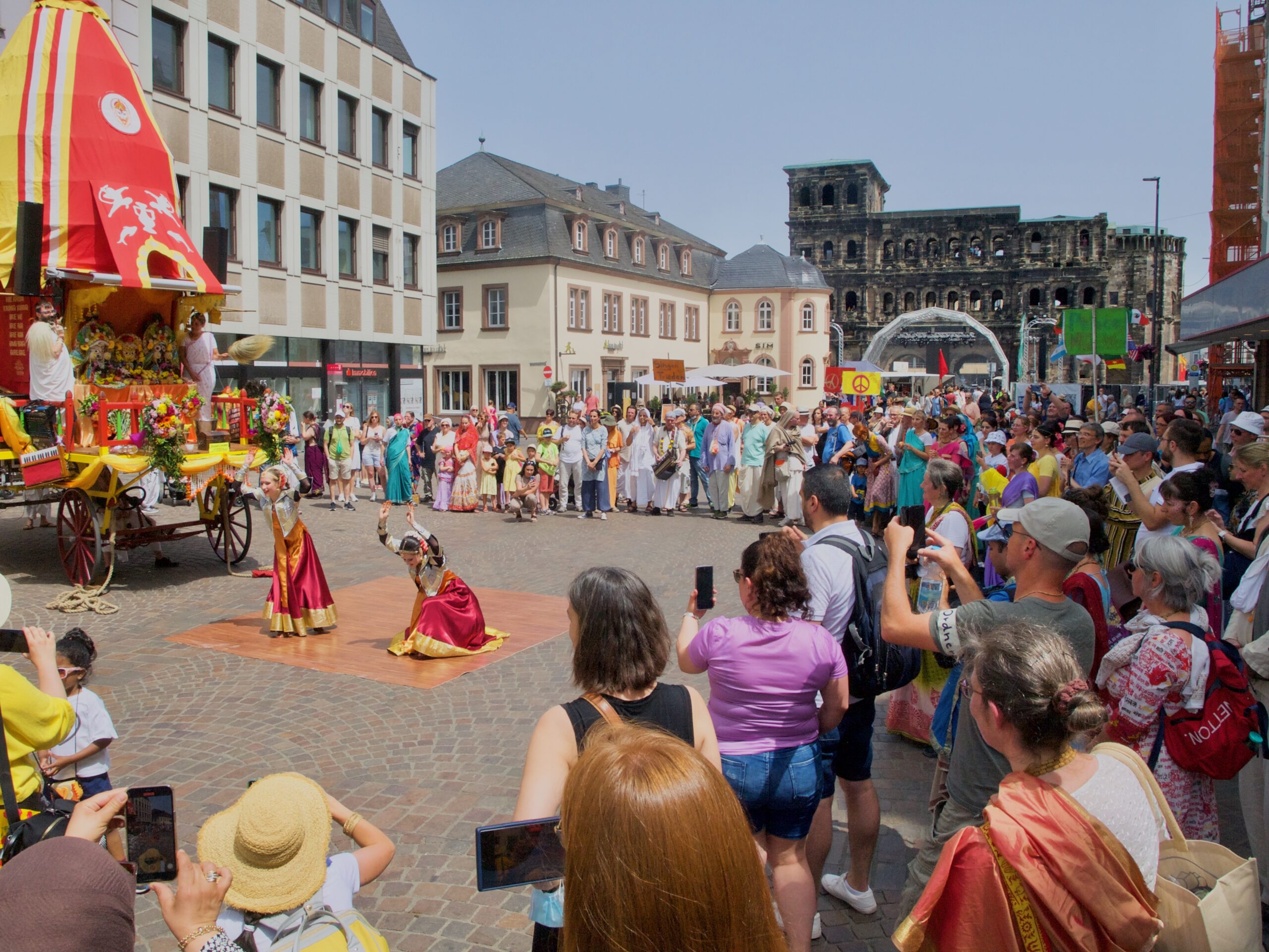 Das erste Ratha-Yatra in Trier fand am 18.06.2022 statt. Organisiert wurde das Ganze von dem Goloka Dhama Tempel in Abentheuer. Die Bildgestalten kamen aus Radhadesh in Belgien. Die Versammlung stand unter dem Motto: “Für Frieden und Völkerverständigung”. Es waren ungefähr 250 Personen anwesend.